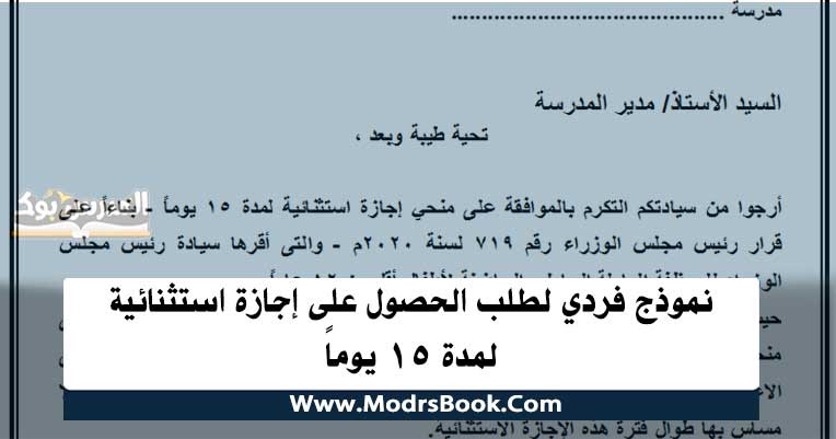 نموذج فردي لطلب الحصول على إجازة استثنائية لمدة 15 يوما
