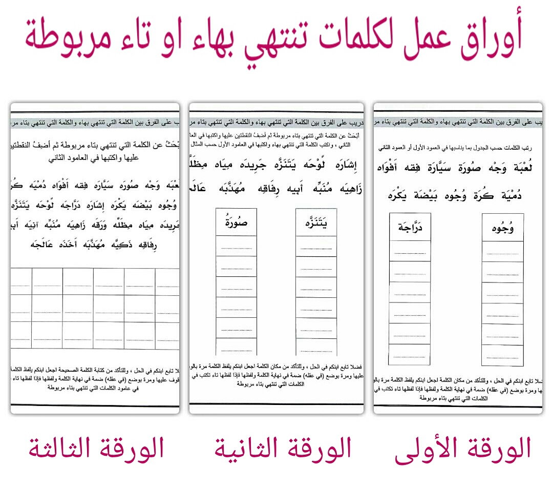 أوراق عمل م ميزة وممتعة في مهارات التاء المربوطة والتاء المبسوطة 1to4