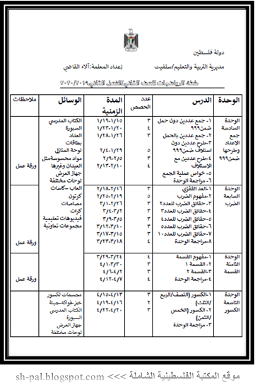 خطة الرياضيات للصف الثاني الفصل الثاني 2019 2020 المكتبة الفلسطينية الشاملة
