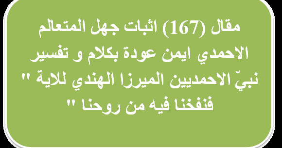 Ibrahim Badawy مقال 167 اثبات جهل المتعالم الاحمدي ايمن عودة بكلام و تفسير نبي الاحمديين الميرزا الهندي للاية فنفخنا فيه من روحنا