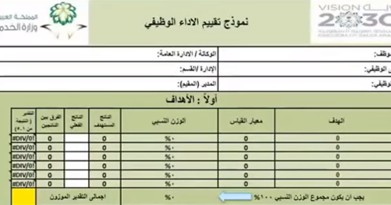 نموذج ميثاق الاداء والتقييم للوظيفة غير الاشرافية اسامة