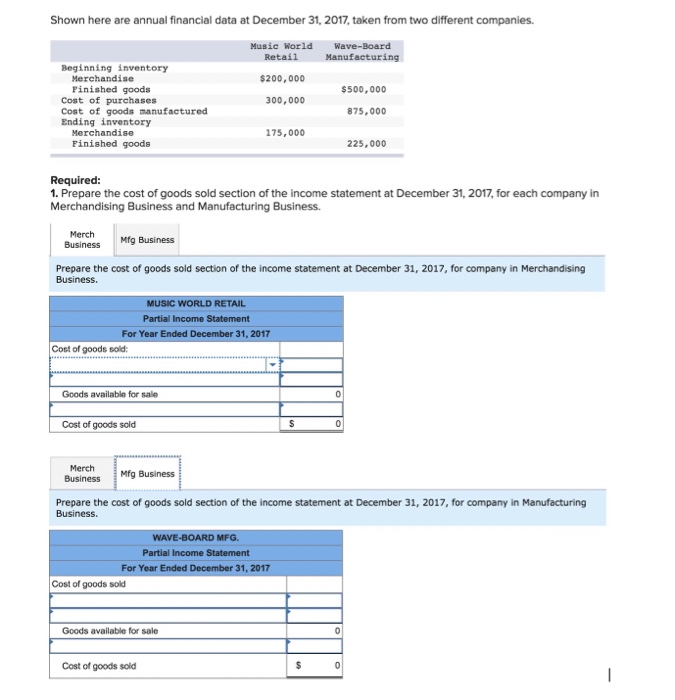 Solved Prepare The Cost Of Goods Sold Section Of The Inco Chegg Com