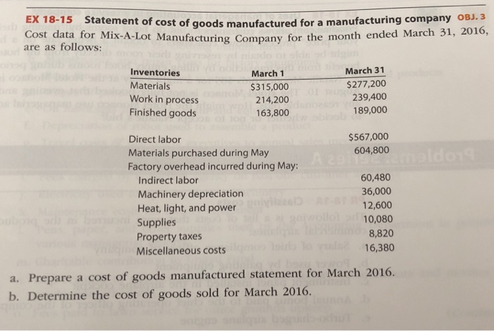 Solved 3 Ex18 15 Statement Of Cost Of Goods Manufactured Chegg Com