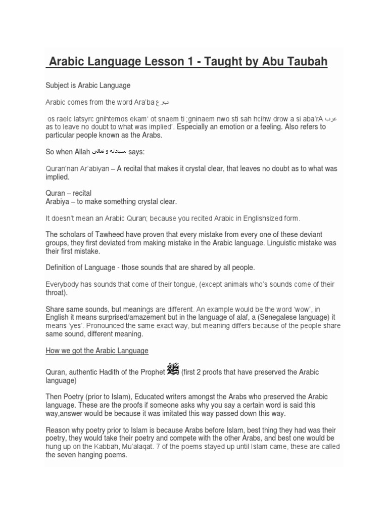 Arabic Language Lesson 1 9 Abu Taubah Arabic Word
